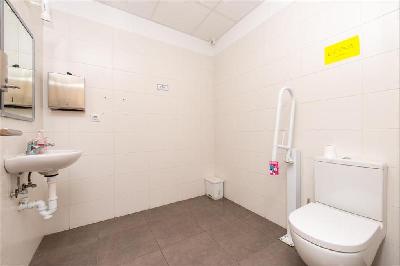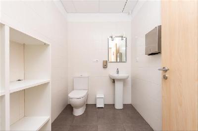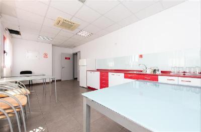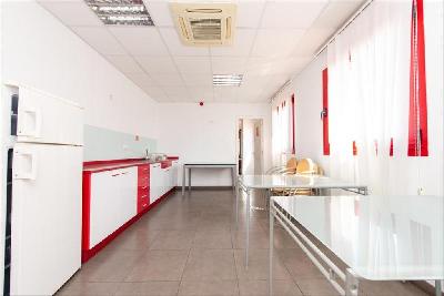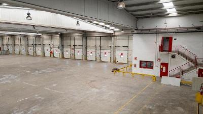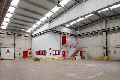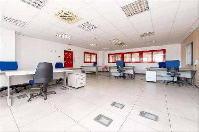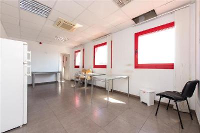 Nave de planta rectangular de 41,4 m de fachada principal , 91 m de fondo y 9 m de altura libre, con muelles de carga para vehículos de trasporte de mercancías a ambos lados de la nave. Además de la zona de trabajo dispone de amplia zona de oficinas, desarrollada en dos plantas de 190 m2, con despachos y aseos en planta baja y vestuarios y comedor en la planta alta.