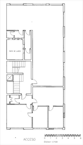 Oficina de 65 m2, situada en la entreplanta de un edificio de viviendas, acondicionada y distribuida en varias estancias y aseo.