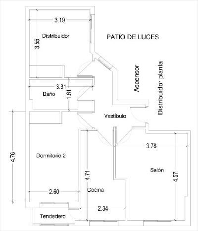 Cuenta con una superficie útil de 58,1 m² , ubicado en edificio residencial con ascensor. Distribuído en vestíbulo, salón-comedor, cocina independiente sin amueblar, lavadero, dos dormitorios y un baño. Año de construcción 1.998.