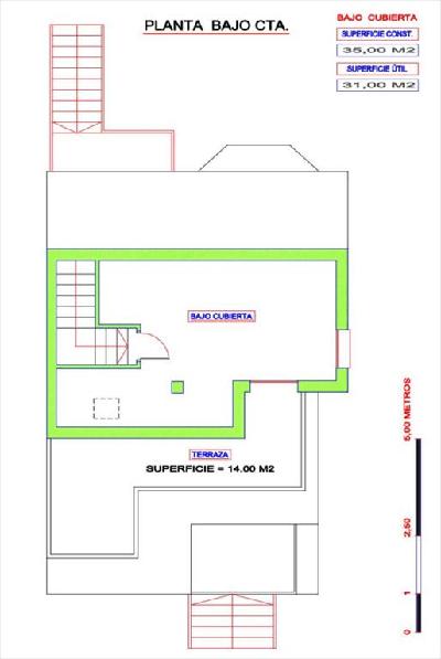 Planta bajo cubierta espacio diáfano con acceso a terraza descubierta.