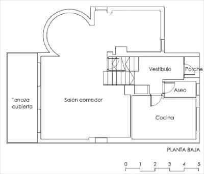 - Planta Baja con: porche, vestíbulo, cocina, aseo, salón comedor , terraza cubierta y escalera.