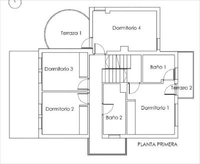 - Planta Primera con: distribuidor, cuatro dormitorios, dos baños, dos terrazas y escalera.
