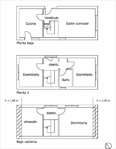 Desarrollada en tres plantas. Distribución: salón-comedor, comedor, cocina indepèndiente ,tres dormitorios, baño, aseo y almacen.